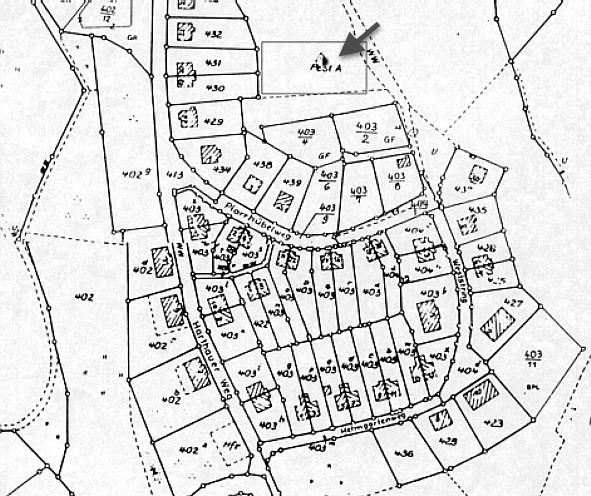 Zwischen 1926 und 1929 wurden am Heimgartenweg in der sogenannten Siedlung mehrer Mehrfamilienhäuser gebaut. Dabei stieß mann beim Ausschachten der talseitigen Häuser des Pfarrhübelweges auf Reste des einstigen Pestackers. (Aussage Kurt Morgenstern)