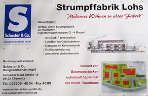 2004 hat die Einsiedler Firma Schuster & Co Baugesellschaft begonnen aus der “Ruine” eine Wohnanlage zu errichten. Auf dem ehemaligen Parkplatz entstehen parallel dazu Einfamilienhäuser. 2007 erinnert nichts mehr an die traditionsreiche Strumpffabrik C.F.Lohs. Es ist eine moderne Wohnanlage entstanden.