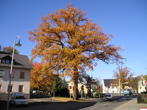An der Straßengablung Hauptstraße / Harthauerstraße steht eine sehr alte Eiche, früher trug sie ein Schild “Friedenseiche 1871”. Sie wurde 1871 gepflanzt, als mit dem Ende des deutsch-französischen Krieges und der Reichsgründung wieder Friede herrschte.