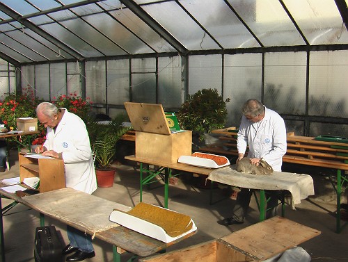 Es wurden 307 Tiere aus 44 Rassen und Farbschlägen ausgestellt. Insgesamt waren 10 Rassekaninchenvereine vertreten. Bevor es soweit war, mußte natürlich erst das Gewächshaus in der Gärtnerei Schwarz hergerichtet werden. Um die Tiere ordentlich präsentieren zu können, mußten über 300 Käfige aufgebaut werden. Auch eine kleine Ausstellung über die Geschichte des Vereins wurde organisiert, gezeigt wurde auch, was mann alles aus Kaninchenfell herstellen kann. Nachdem mann die ganze Woche über alles getan hat, das es eine würdige Jubiläumsausstellung wird, hofften die Zuchtfreunde auf viele Besucher. Dies sollte dann auch in Erfüllung gehen. So haben an beiden Ausstellungstagen über 500 Gäste sich die Tiere angeschaut. Wobei Kinder nicht mitgezählt wurden. Ziel jeder Rassekaninchenausstellung ist, einen der vielen Preise mit nach Hause nehmen zu können. Die Einsiedler Zuchtfreunde haben für 48 Tiere einen Preis erhalten, davon erhielten 6 Tiere ein vorzüglich. Das ist die höchste Wertung. Insgesamt erhielten 16 Tiere diese Bewertung. Die Einsiedler erhielten insgesamt im Durchschnitt 96 Punkte, was ein hervorragend bedeutet. Als bester Nachwuchszüchter wurde der Einsiedler Marcel Heidernätsch ausgezeichnet. Sonderpreise gab es auch vom Ortschaftsrat Einsiedel, der Sparkasse und dem Einsiedler Brauhaus. Zum Schluß bedankte sich der Vorsitzende Gerhard Geschner bei allen Beteiligten, Helfern und Sponsoren für das gute gelingen der Jubiläumsausstellung zum 100. Geburtstag der Rassekaninchenzüchter.
