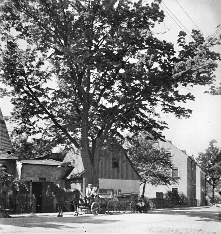 P.S. Gestanden hat die Linde vor dem Grundstück Claus Helga an der Hauptstraße, hier war auch die Fischerschmiede. Die Schmiede von Max Fischer war bis zu seinem Tode 1958 in Betrieb, im Sommer 1935 wurde die alte Linde gefällt.